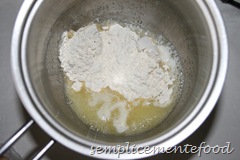 Fare sciogliere in un pentolino capiente il burro, aggiungervi la farina e mescolare